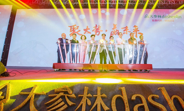 PT视讯药业集团董事长刘景萍女士与大参林医药集团董事长柯云峰先生、中国医药商业协会执行会长付明仲女士等嘉宾共同开启了“聚大势•赢未来"大参林工商合作峰会的大幕。